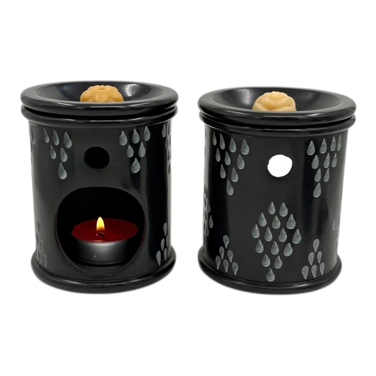 Aromalamp speksteen zwart, gekerfde druppels