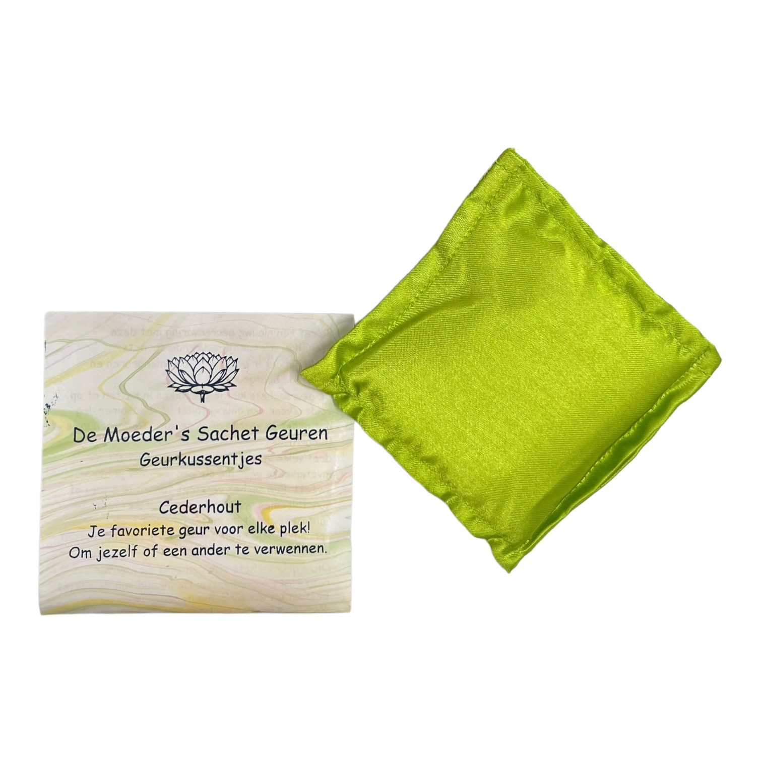 Een unieke geelzoete boterballen houtgeur. De vrolijke en eerlijke zoon van Sandelhout, die ons toezwaait vanaf zonovergoten berghellingen. De inhoud van de zakjes bestaat uit wit sandelhoutpoeder waar de Moeder’s Geuren Cederhout parfum aan is toegevoegd. Dit geurfestijn zit in een katoenen binnenzakje en is dichtgestikt in een mooi katoenen buitenzakje.