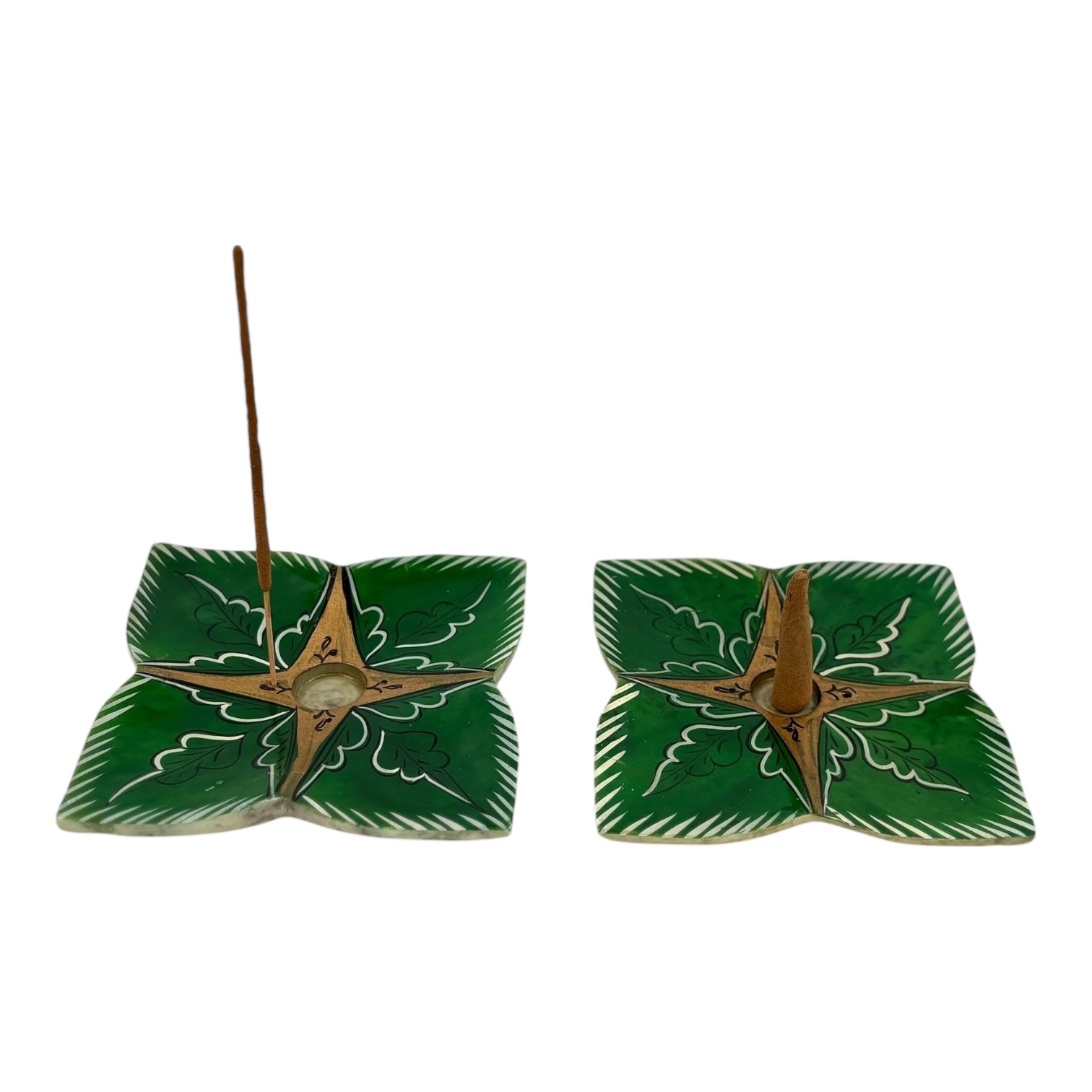 Handgemaakte, glad gepolijste, spekstenen wierookhouder voor het branden van stokjes en kegeltjes. De doorsnee van de wierookhouder is 10 cm.
