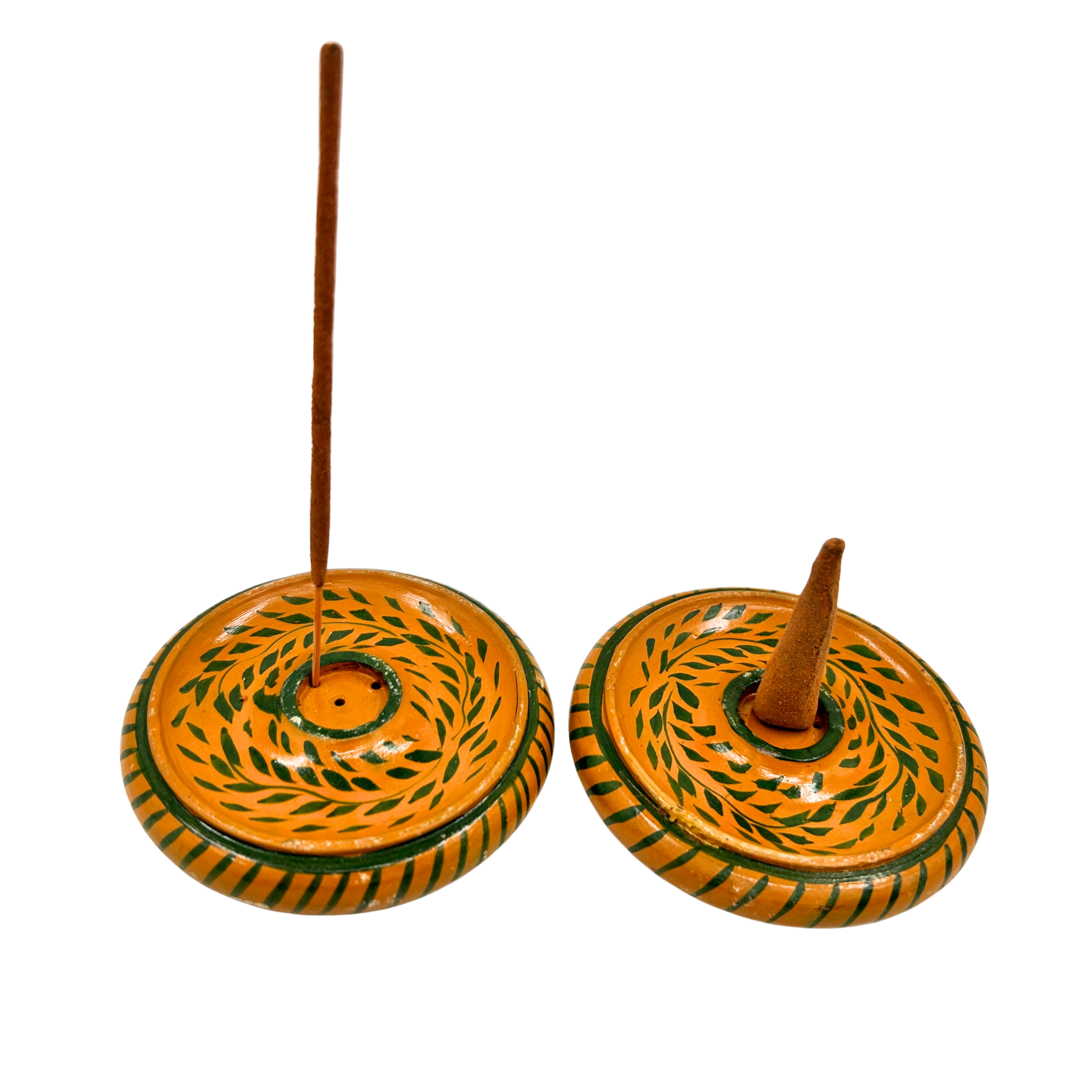Handgemaakte, glad gepolijste, spekstenen wierookhouder voor het branden van stokjes en kegeltjes. De doorsnee van de wierookhouder is 7,5cm.