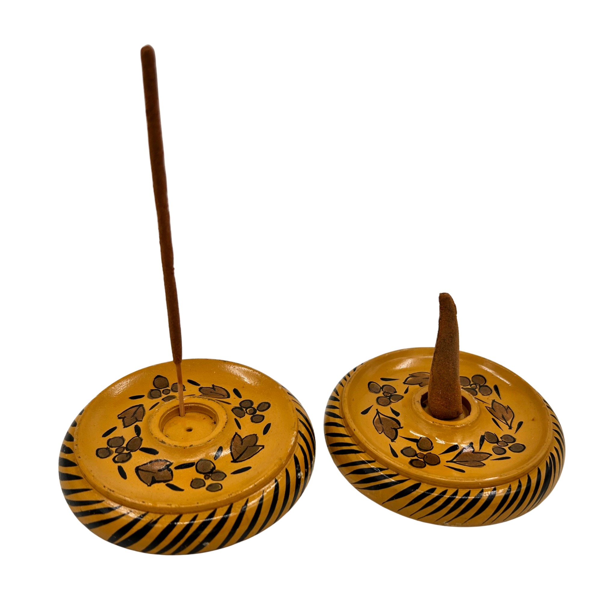 Handgemaakte, glad gepolijste, spekstenen wierookhouder voor het branden van stokjes en kegeltjes. De doorsnee van de wierookhouder is 7,5cm.